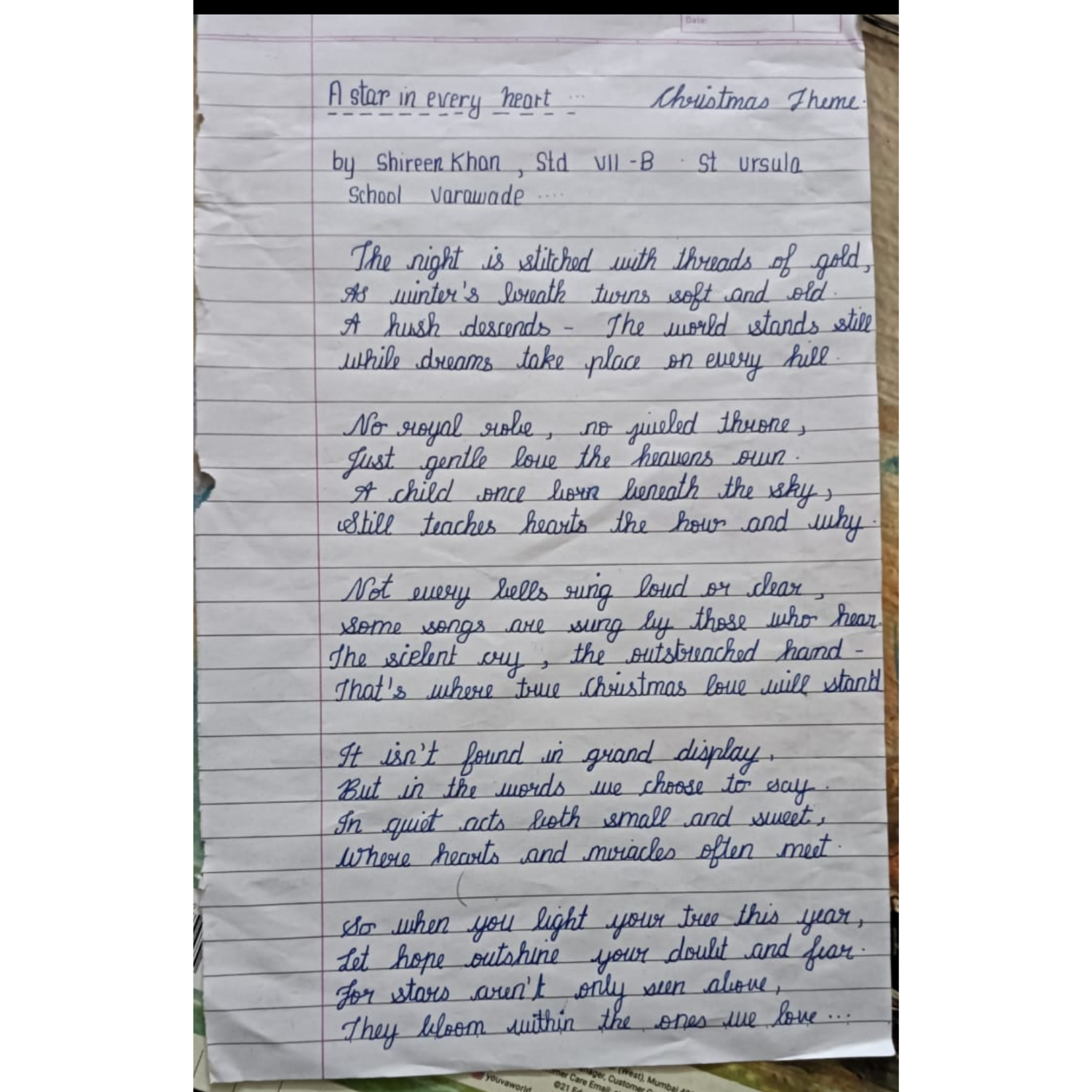 Shireen Khan, Class 7, St. Ursula School, Kankavali, Maharashtra