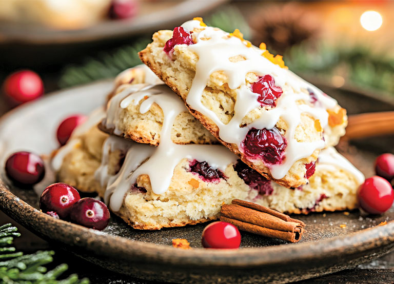 - Tip the dough out onto a silicone baking mat and pat into an 8-inch wide circle. Slice into 8 equal triangles with a sharp knife to help cut through the cranberries.
