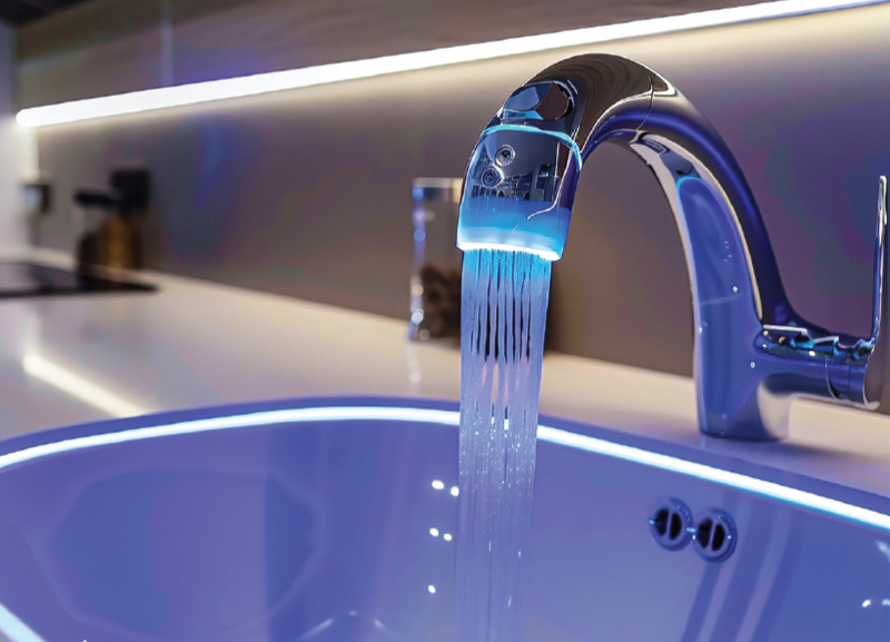 An automatic faucet, also called a touchless tap, is like a magic tap that turns on water when you put your hands near it. You don’t need to touch the handle, which helps stop germs from spreading. This tap has a special ‘eye’ called a sensor that uses infrared light to detect when your hands