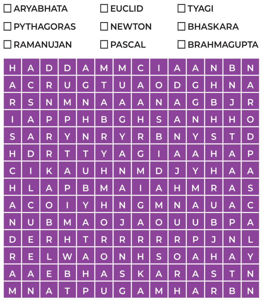 Find the names of the given mathematicians in the grid.