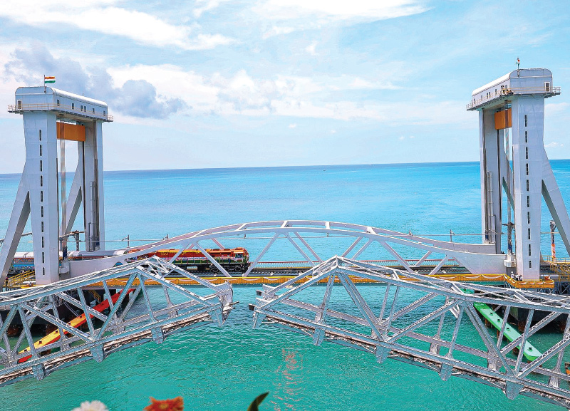 The Pamban Rail Bridge, India’s first vertical-lift sea bridge, was inaugurated by Prime Minister Narendra Modi on April 6. The construction of the bridge, which links Rameswaram Island and Mandapam in Tamil Nadu, involved an expense of ₹535 crore. The Pamban Rail Bridge features a span measuring 72.5mts in length that can be raised with the help of a vertical-lift system. This allows ships to move under the bridge. The bridge will facilitate smooth travel to Rameswaram, a popular pilgrimage centre, via rail. It is engineered to accommodate the electrification of railways in the future and can also endure the region’s severe marine environment. The bridge will be used by freight and semi-high-speed trains.