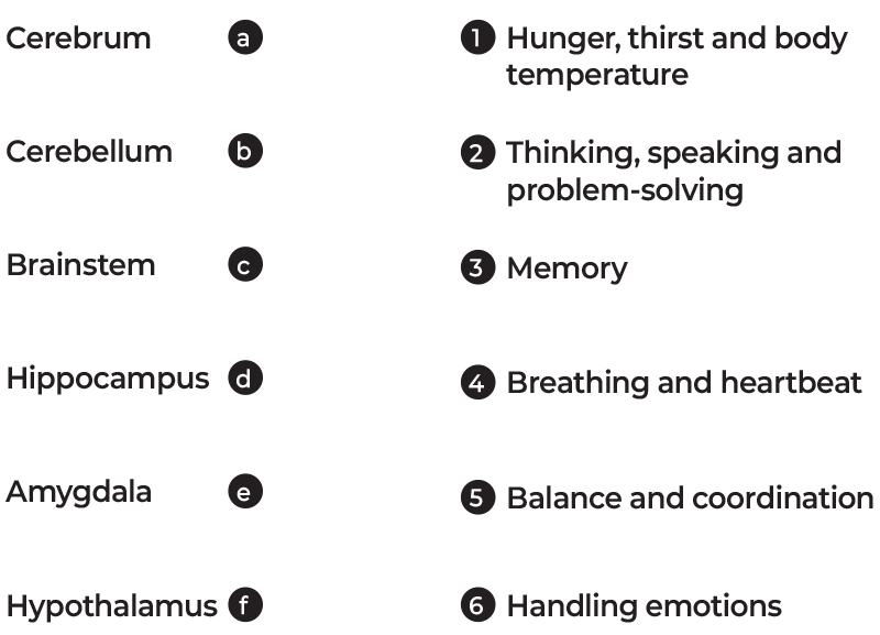 Match the part of the brain to its function.