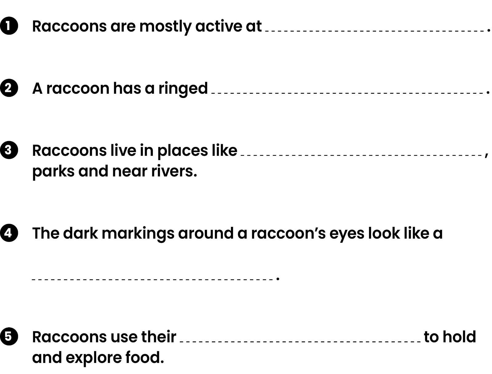Raccoons’ paws have five fingers, which help them to hold objects easily.