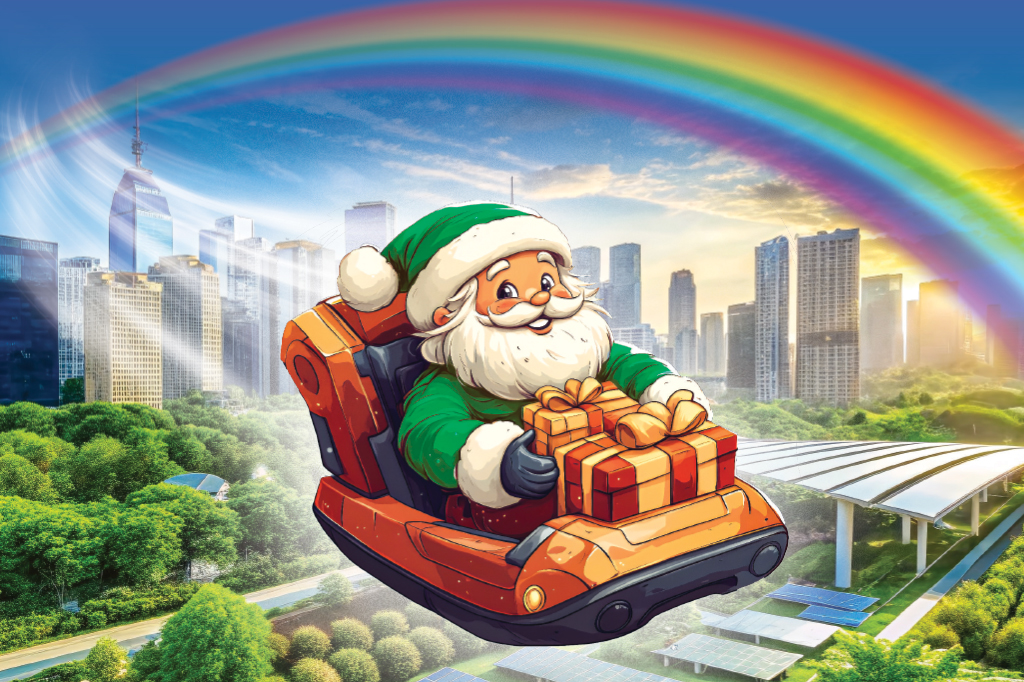 New-age Santa Claus would sport green clothing from head to toe, symbolising the colour of verdant Mother Earth. He would ride a flying car with the backseat filled with gifts. The vehicle would be eco-friendly, releasing oxygen instead of smoke. It would be powered by eco-friendly fuel. He would gift everyone saplings to plant in their gardens and balconies and recycling bins to dispose of garbage. He would also place these bins on roads, in malls and in other public places. He would have an Instagram handle @gogreensanta and on it he would post the message, “Jingle bells, jingle bells, jingle all the way! Oh! What fun it is to ride in an eco-friendly way! Let’s start living the green way today!