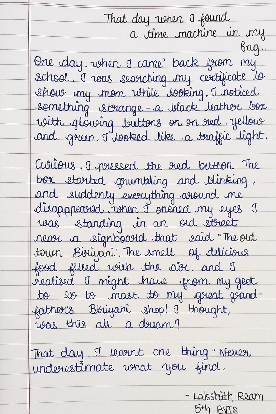 Lakshith Raam, Class 6, Babaji Vidhyashram School, Chennai