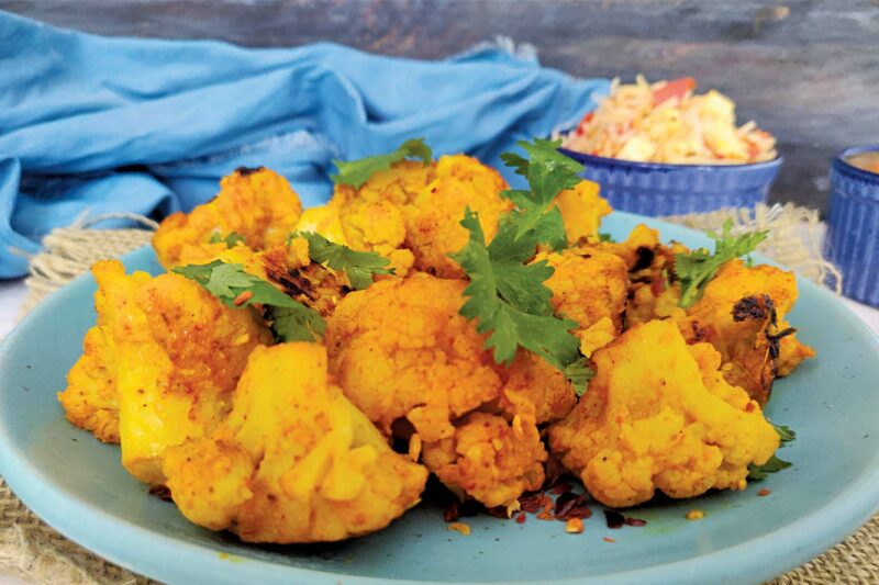 Baked masala gobi is an easy-peasy recipe that goes best with dal and rice. You can also roll it up in a chapati and serve it with some mint chutney.