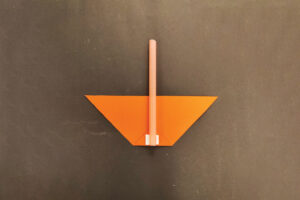 • Cut a triangle with a 6-inch base out of the orange craft paper. Fold it at the tip as shown.