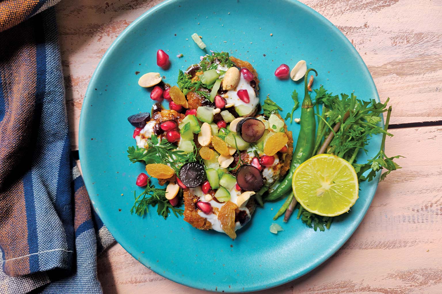 This is a simple yet interesting chaat that uses millets. You can add nuts, raisins and fruits to this one to make it special. The tikkis are made with very little oil. Don’t miss out on the curd as that makes the chaat moist, which is required for jowar tikkis.